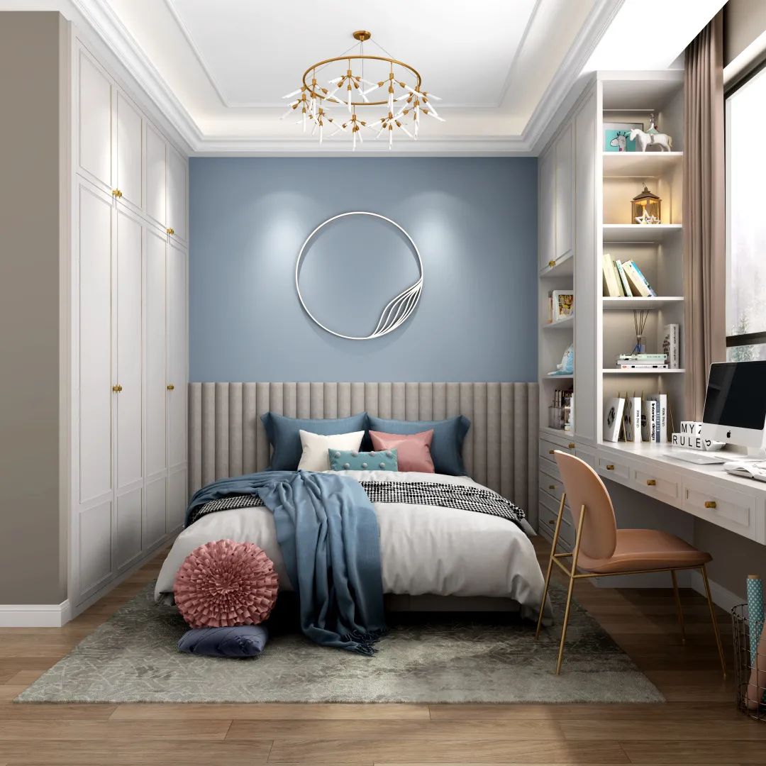 ②兩側(cè)根據(jù)空間和需求,可做書(shū)柜/儲(chǔ)物柜/衣柜;